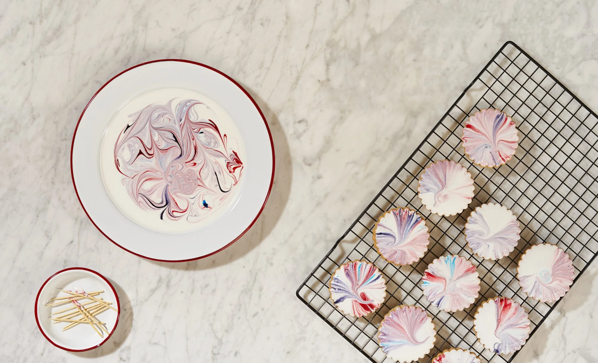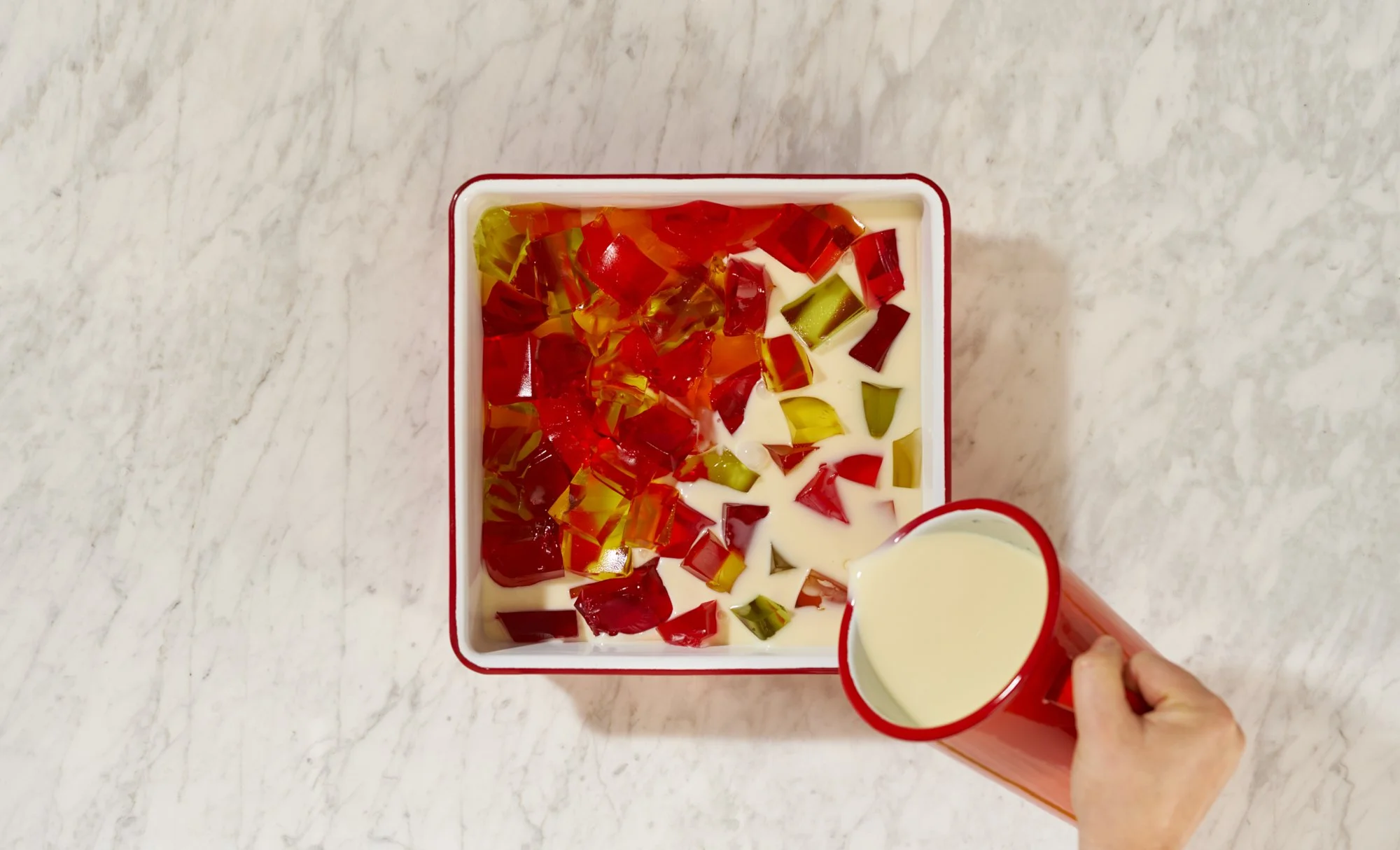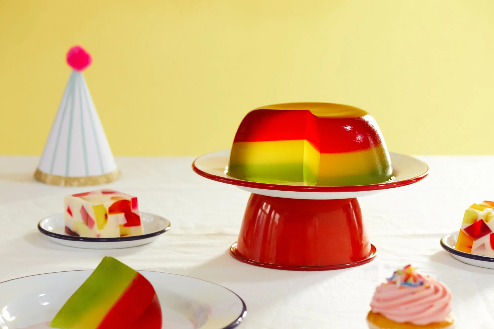 A series of recipe step-by-steps, and kids party table set-up with cakes, jellies and cookies to showcase Falcon enamel’s multi-use functions - both bake and serveware.